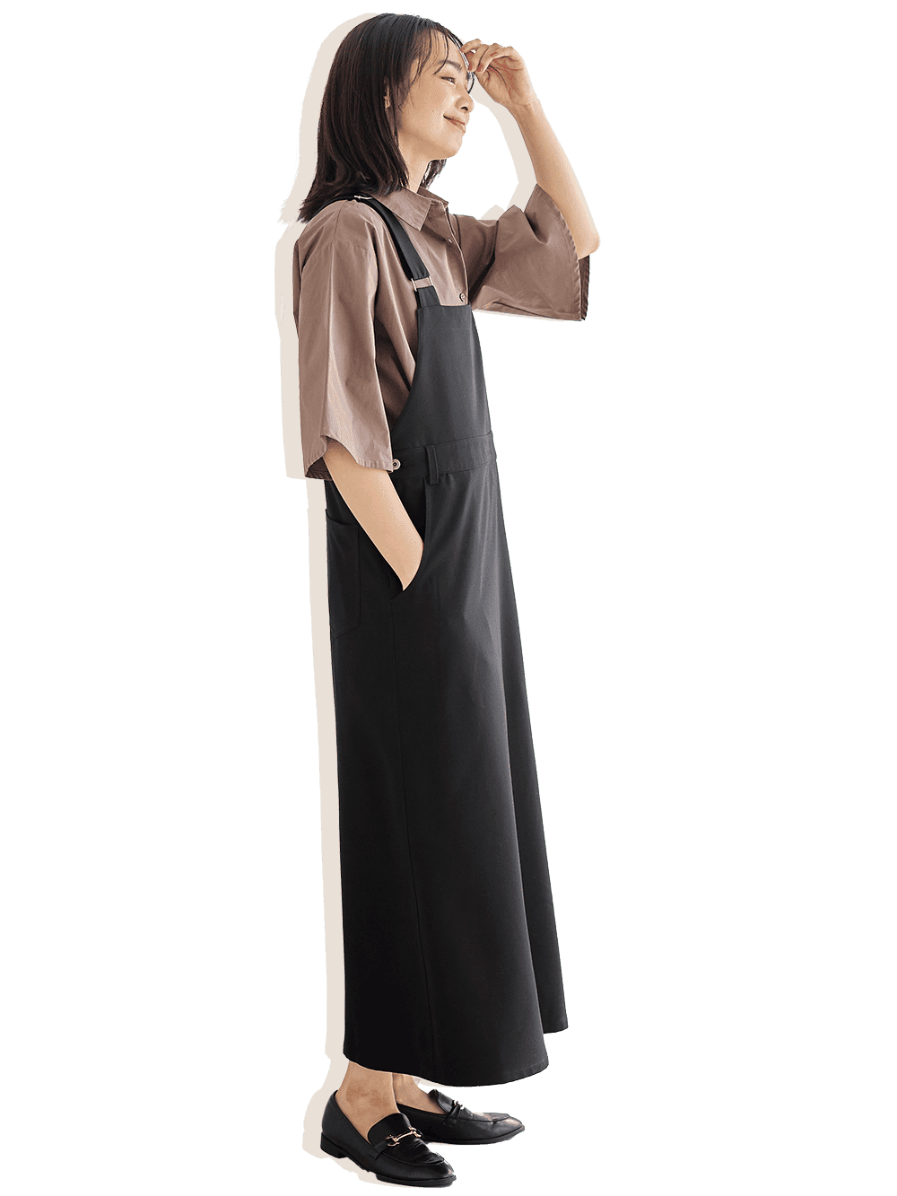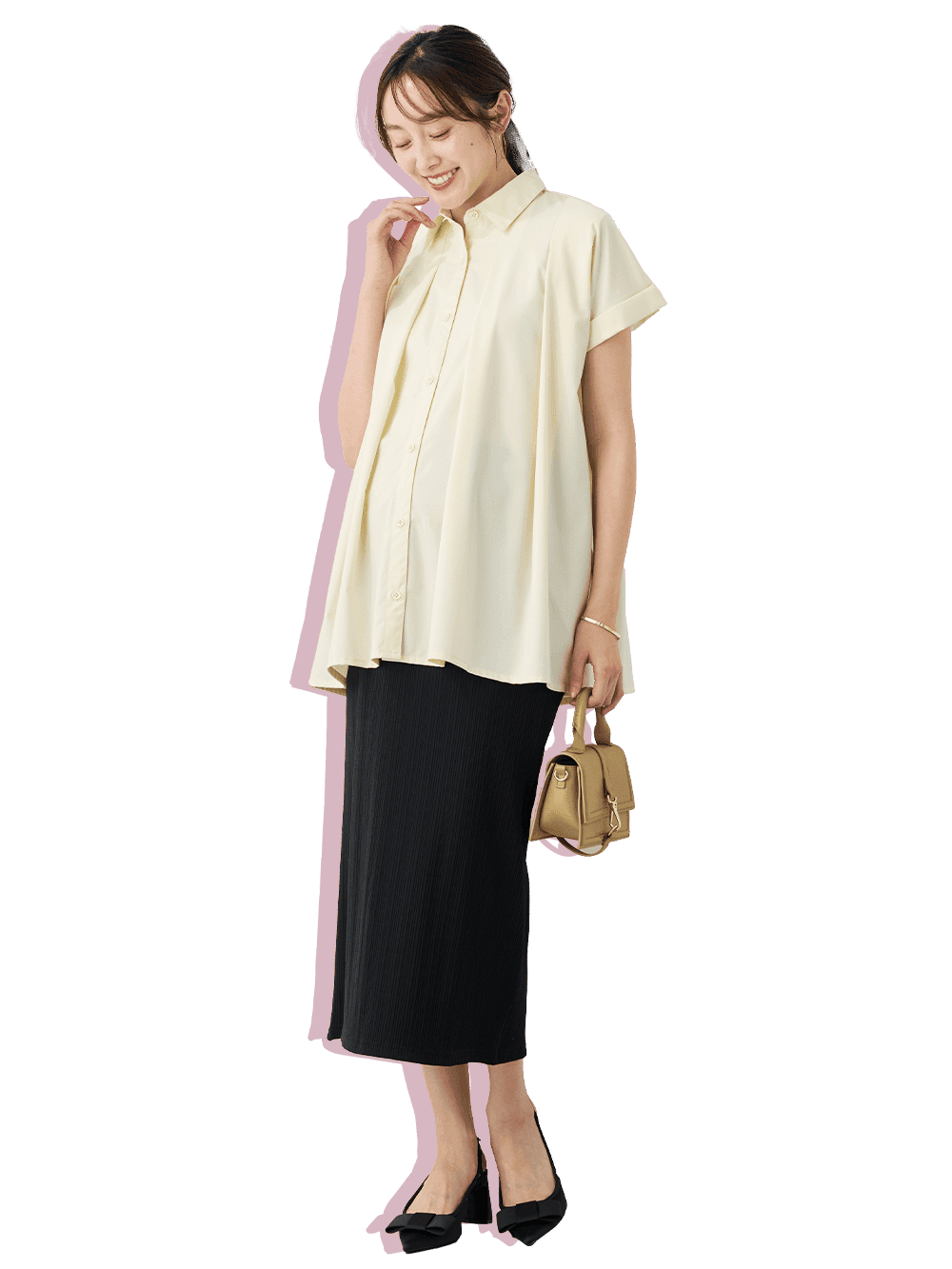 マタニティスタイルに欠かせないキャミワンピに、シンプルなTOPSを合わせたベーシックなセット。トップスはサイドスリットで産後は瞬時に授乳もできて、インナーで幅広いアレンジが可能。セットでも単品でも着まわせるからコーディネートの幅も広がります。