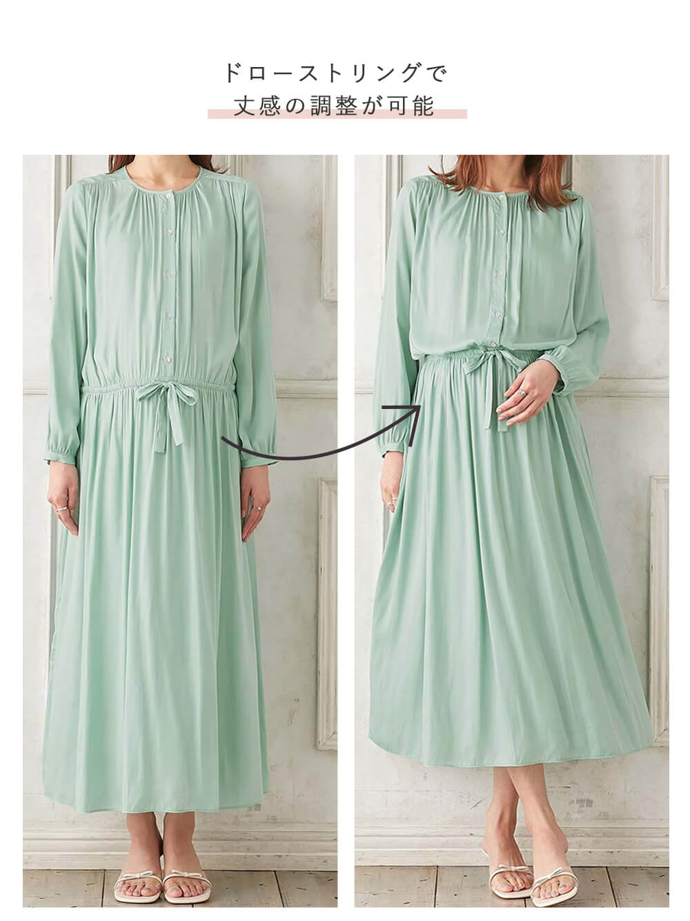 独特の風合いが人気のヴィンテージサテンワンピースに長袖Ver.が登場!