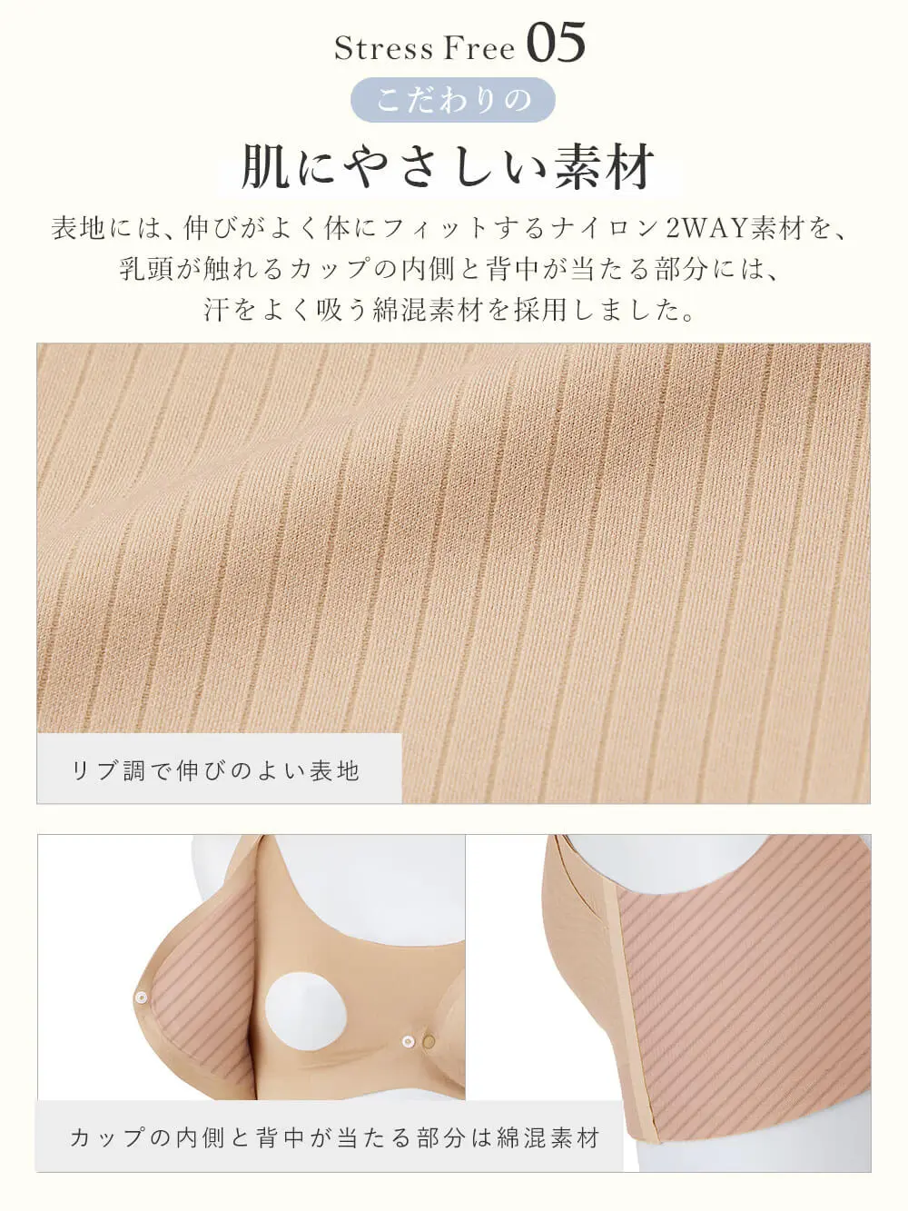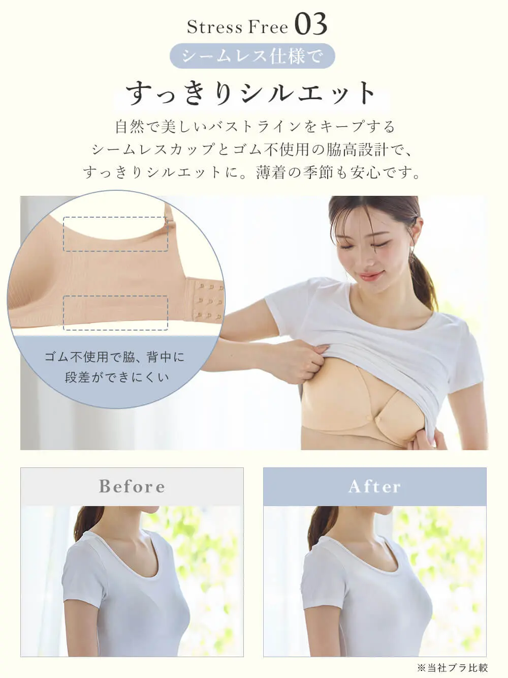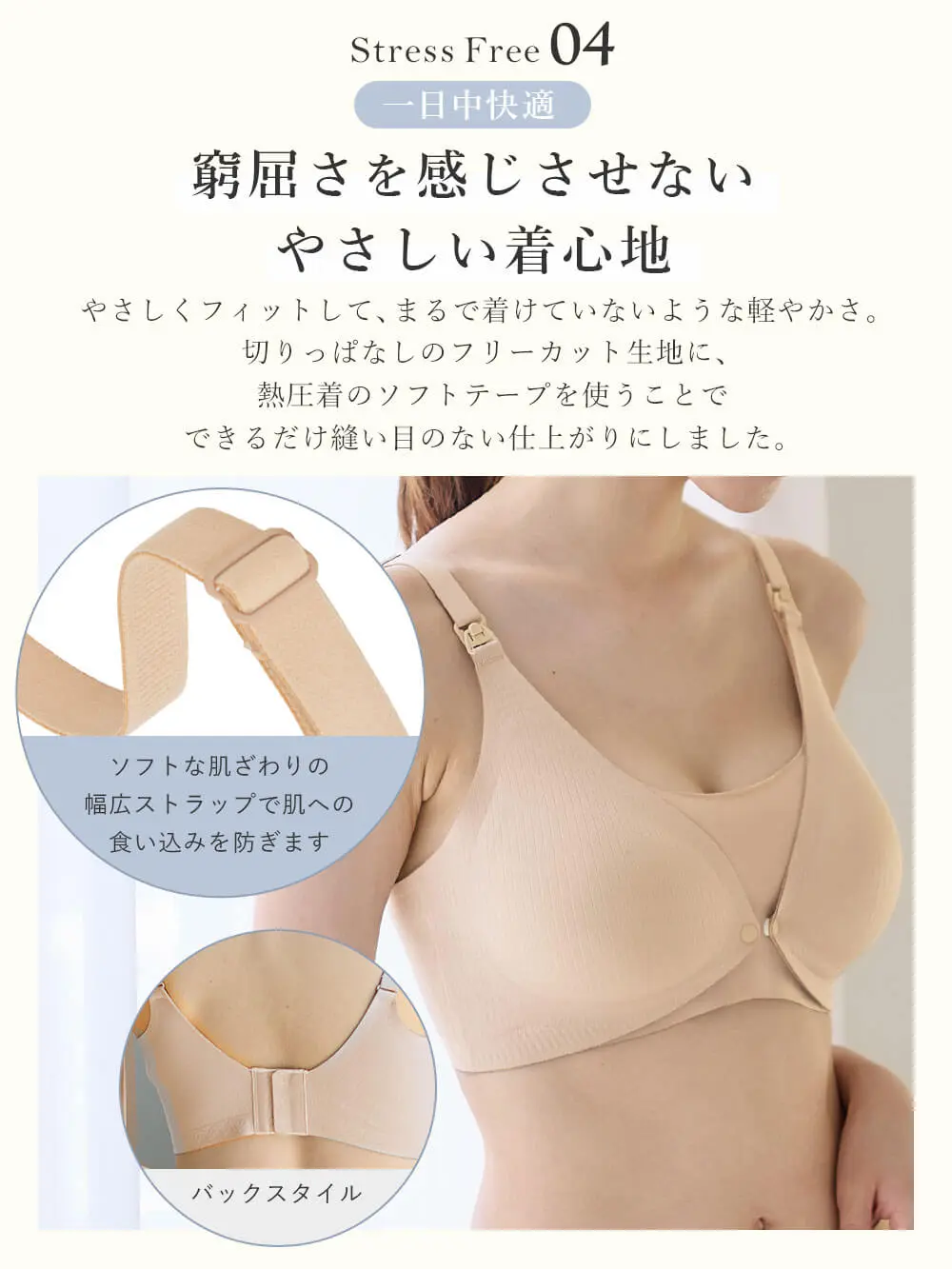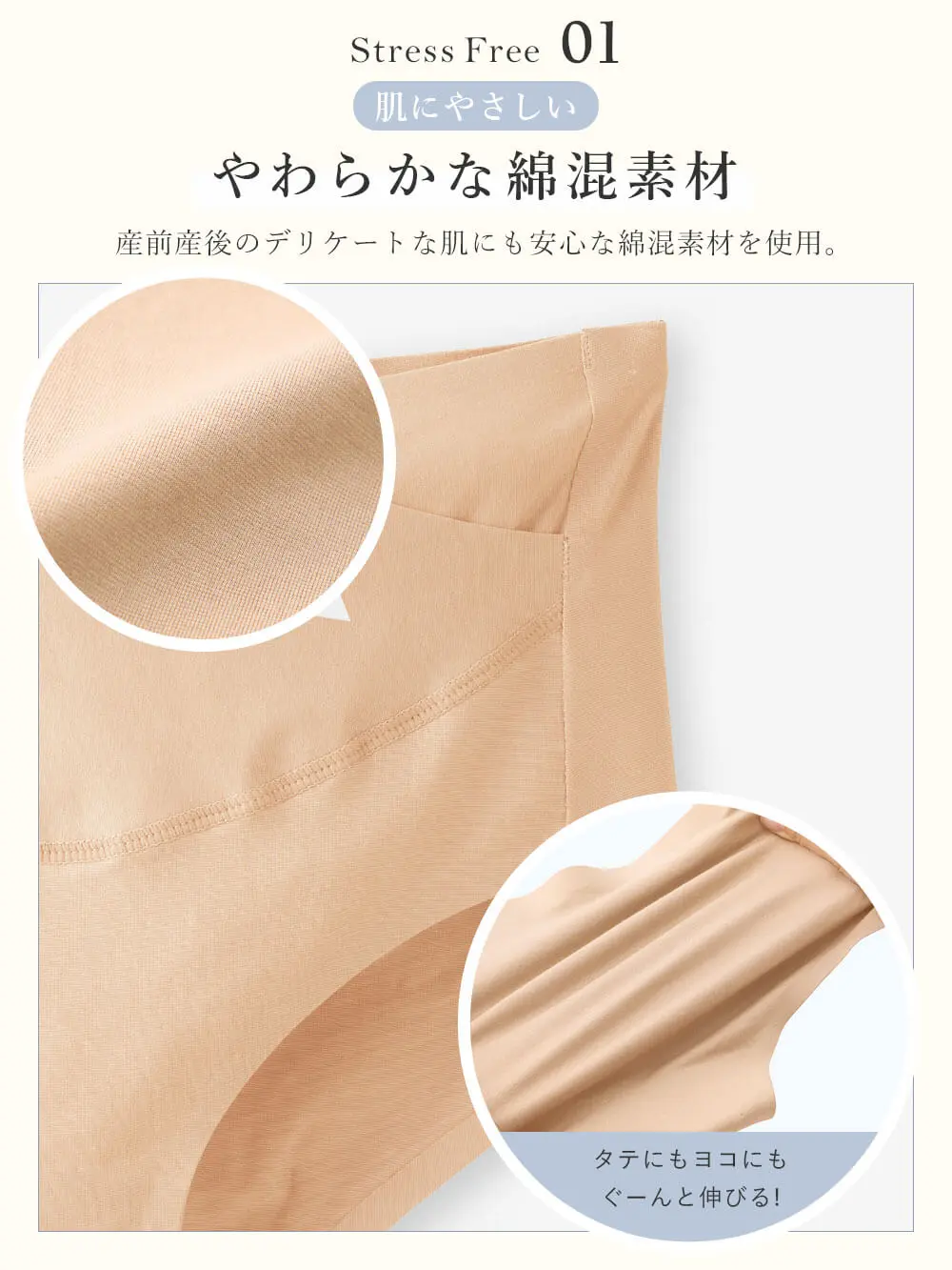 品番:24888: ストレスフリー 前開きシームレスカップ授乳ブラ 品番:24889:ストレスフリー産前産後クロスショーツ