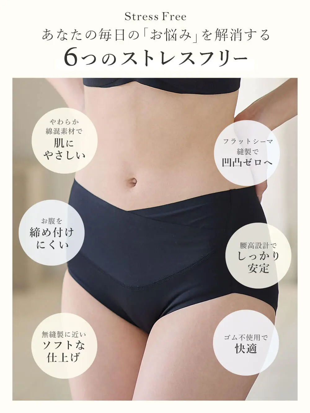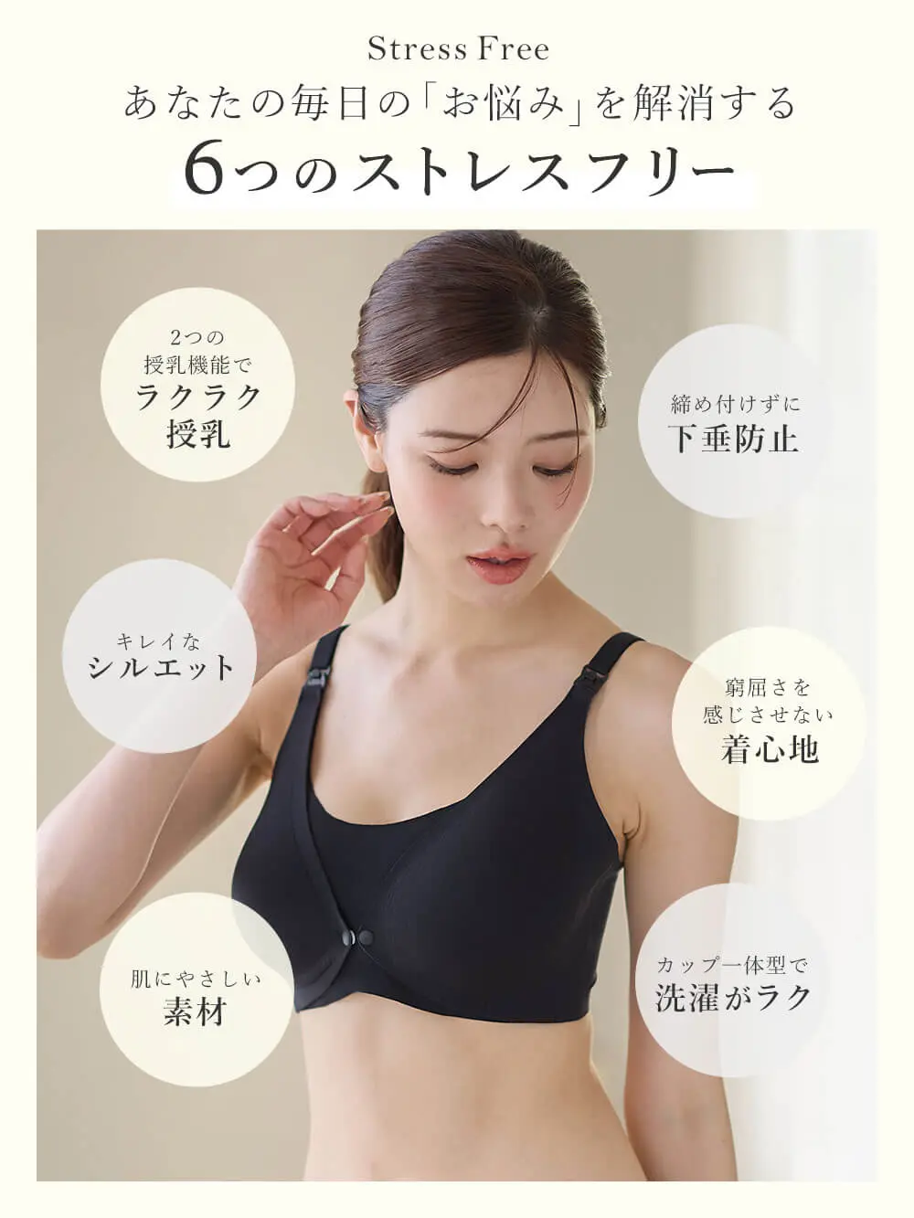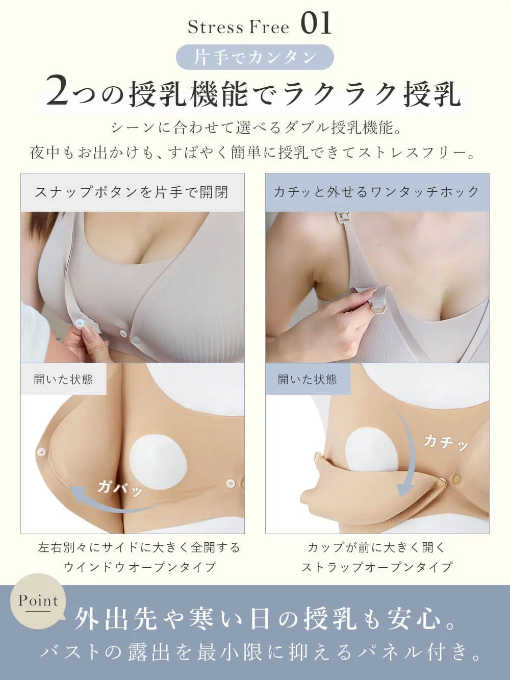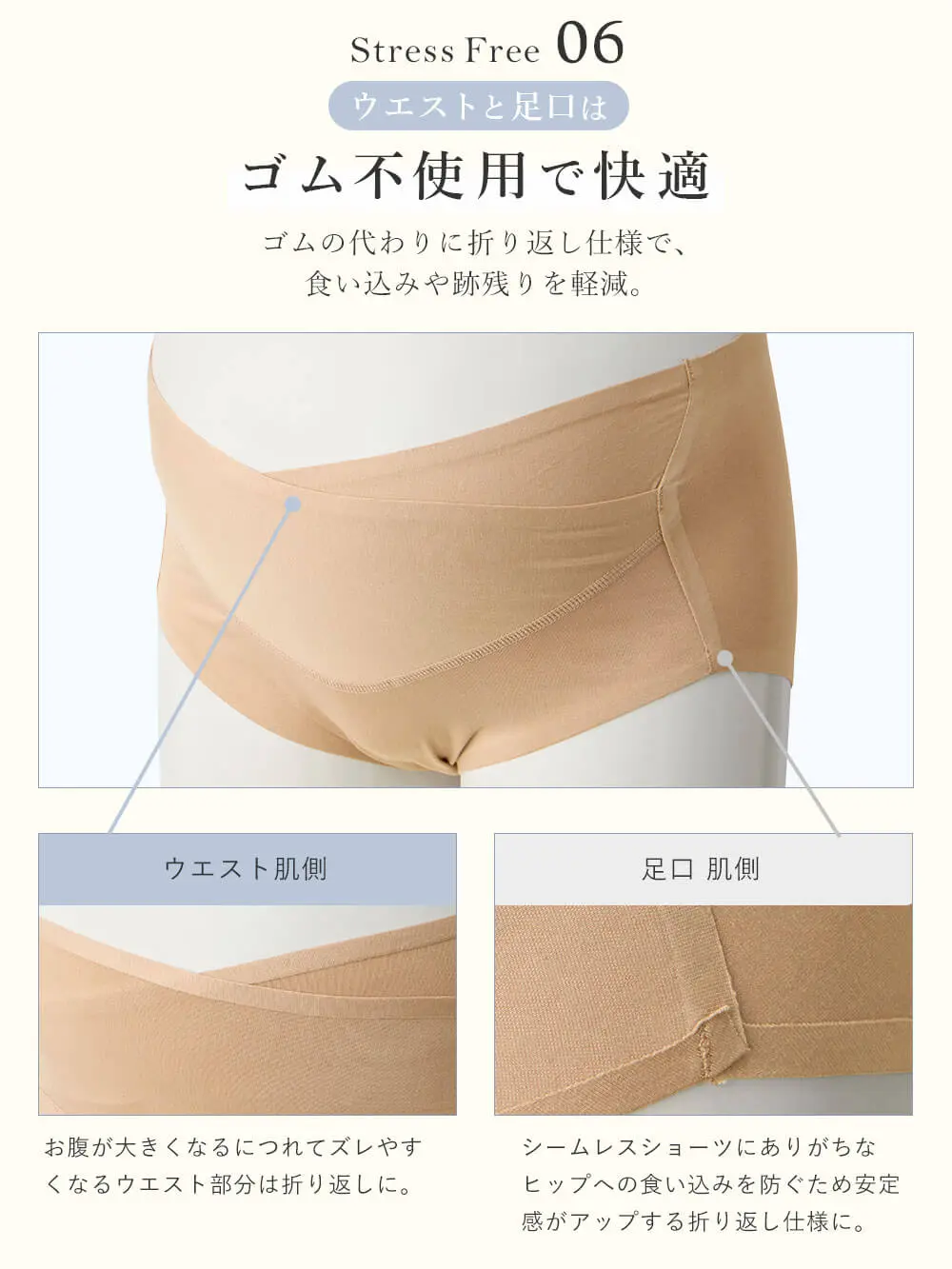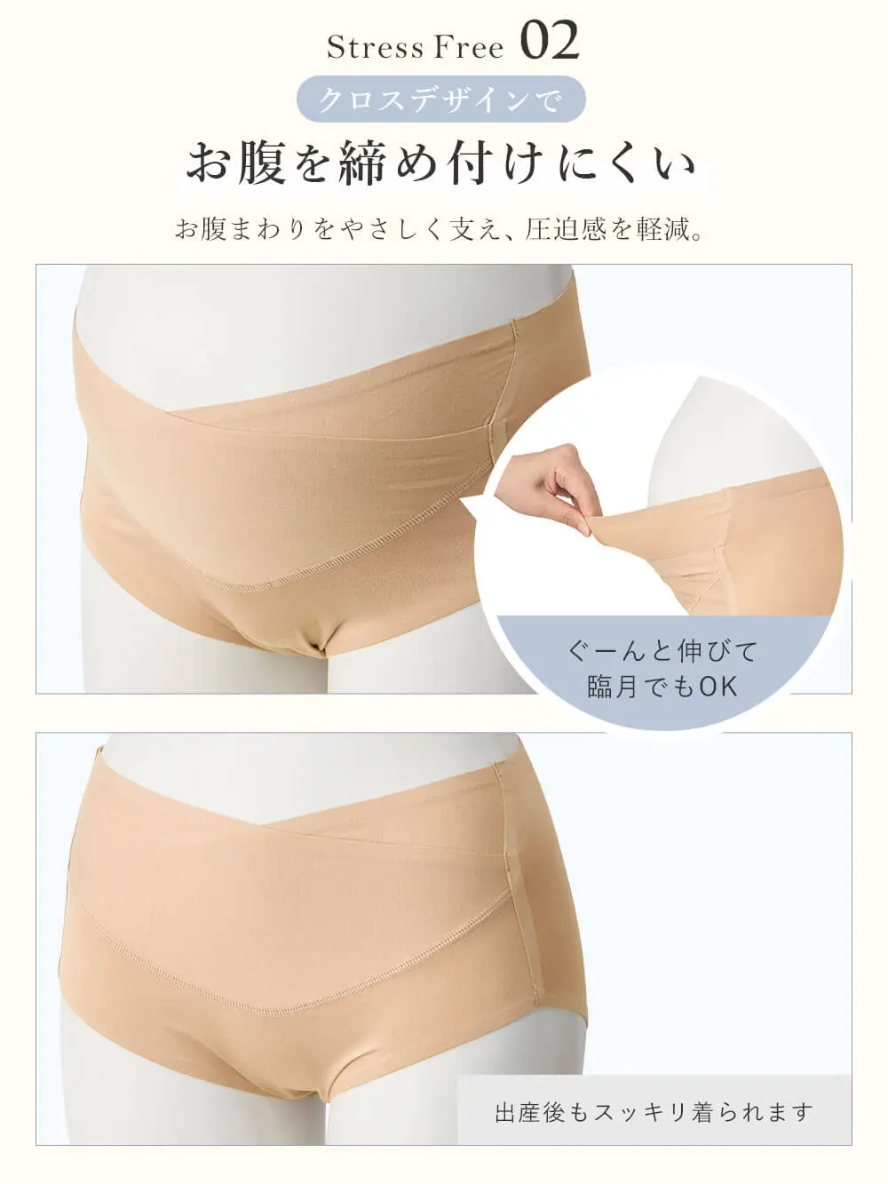 品番:24888: ストレスフリー 前開きシームレスカップ授乳ブラ 品番:24889:ストレスフリー産前産後クロスショーツ
